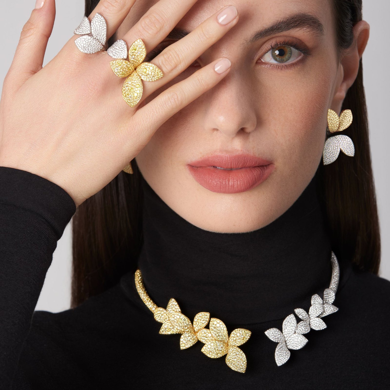 Giardini Segreti Five Leaves Flower Ring (White & Yellow Gold)