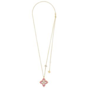 Princess Flower Rhodonite & Diamond Pendant Necklace Large Version (Yellow Gold)