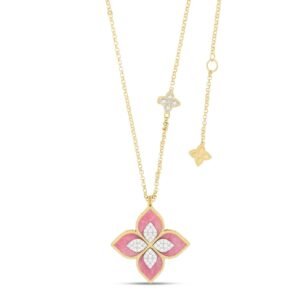 Be the first to review “Princess Flower Rhodonite & Diamond Pendant Necklace Large Version (Yellow Gold)”