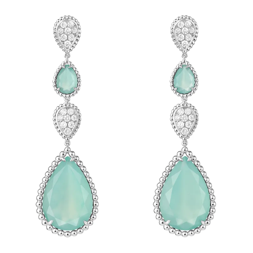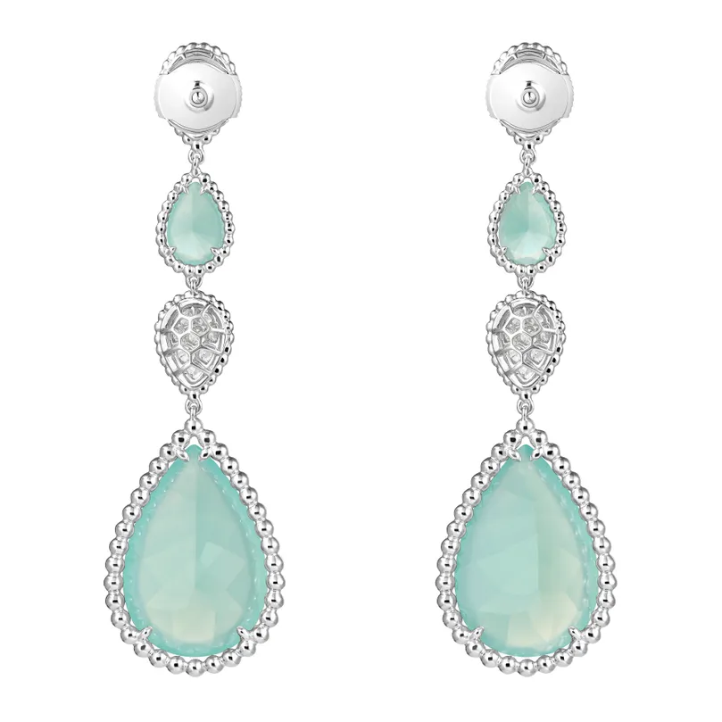 Serpent Bohème Aquaprase & Diamond Pendant Earrings, XS & L Motifs (White Gold)