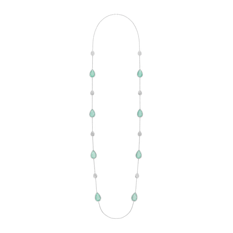 Serpent Bohème Aquaprases & Diamond Long Necklace 16 Motifs (White Gold)