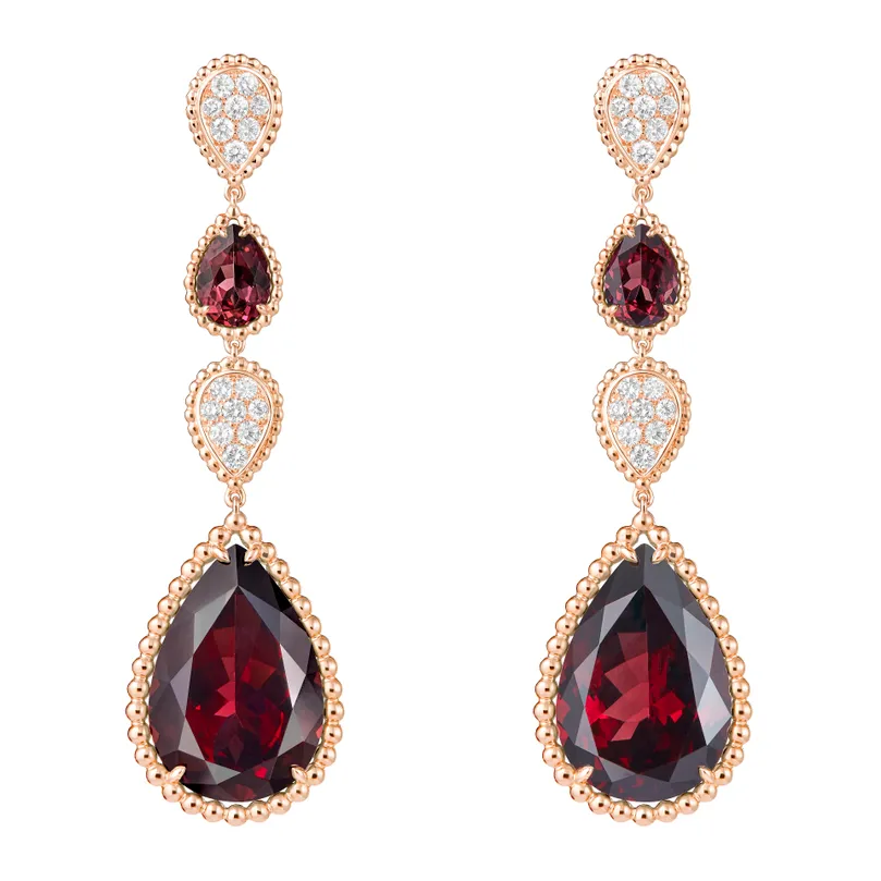 Serpent Bohème Rhodolite & Diamond Pendant Earrings, XS & L Motifs (Rose Gold)