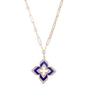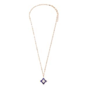 Venetian Princess Lapis Lazuli & Two Row Diamond Pendant Necklace Large Version (Rose Gold)